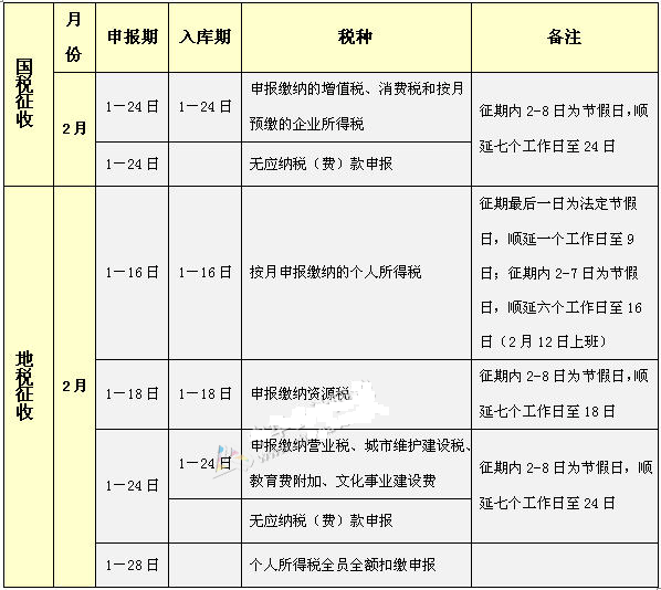 北京公司2月份納稅申報辦稅日期